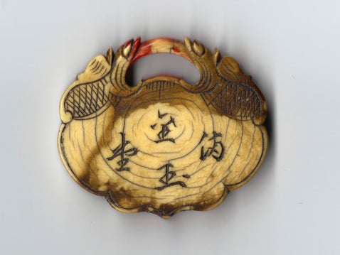 Both sides are inscribed with Chinese characters. The characters on the flip side (not shown) roughly translate as follows: